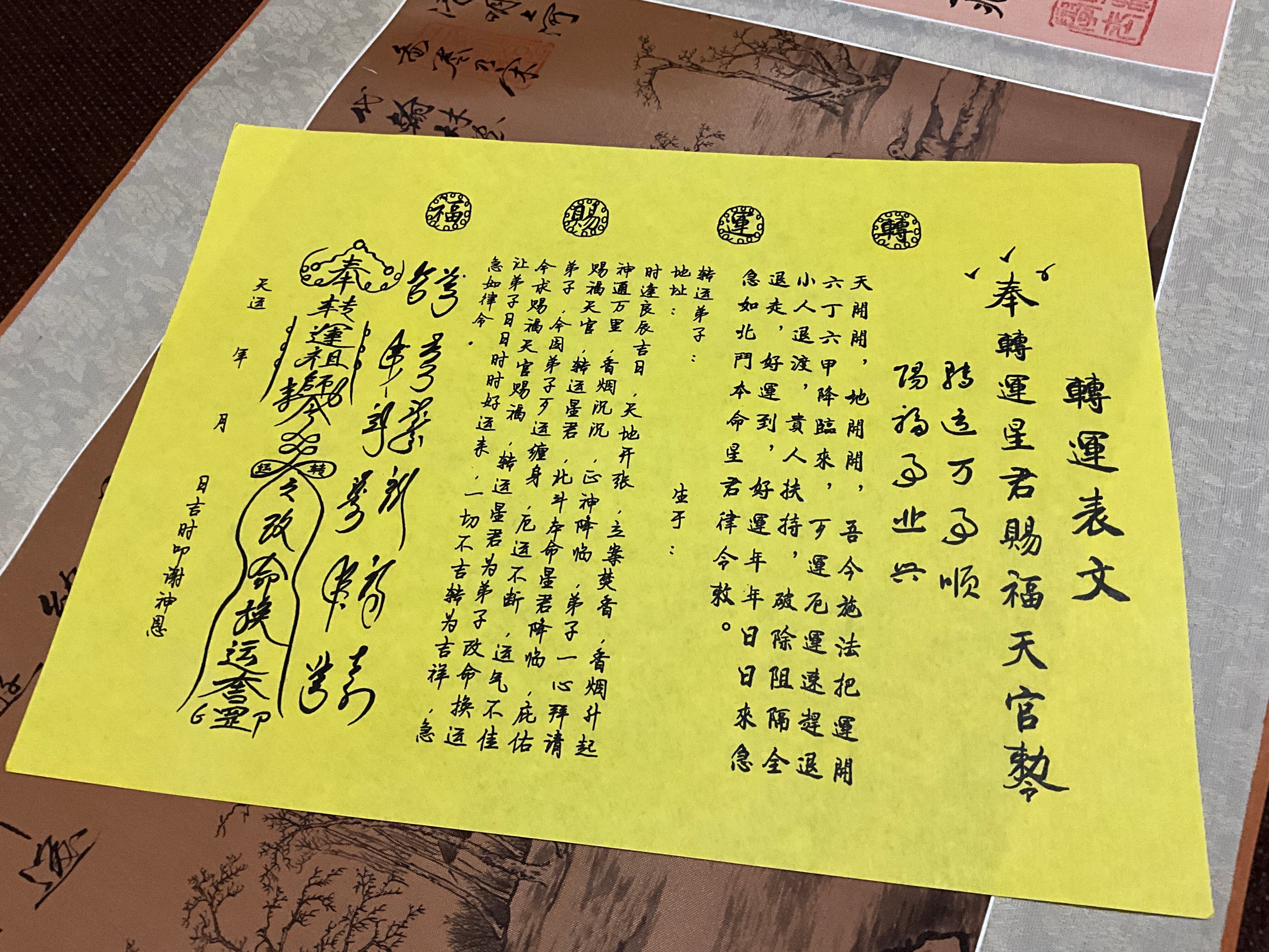本符は「轉運祈願疏文(てんうんきがんそぶん)」に則り、朱砂で一枚ずつ手書き開光され、厄の流れを断ち、良運の通路を開くための力が込められています。